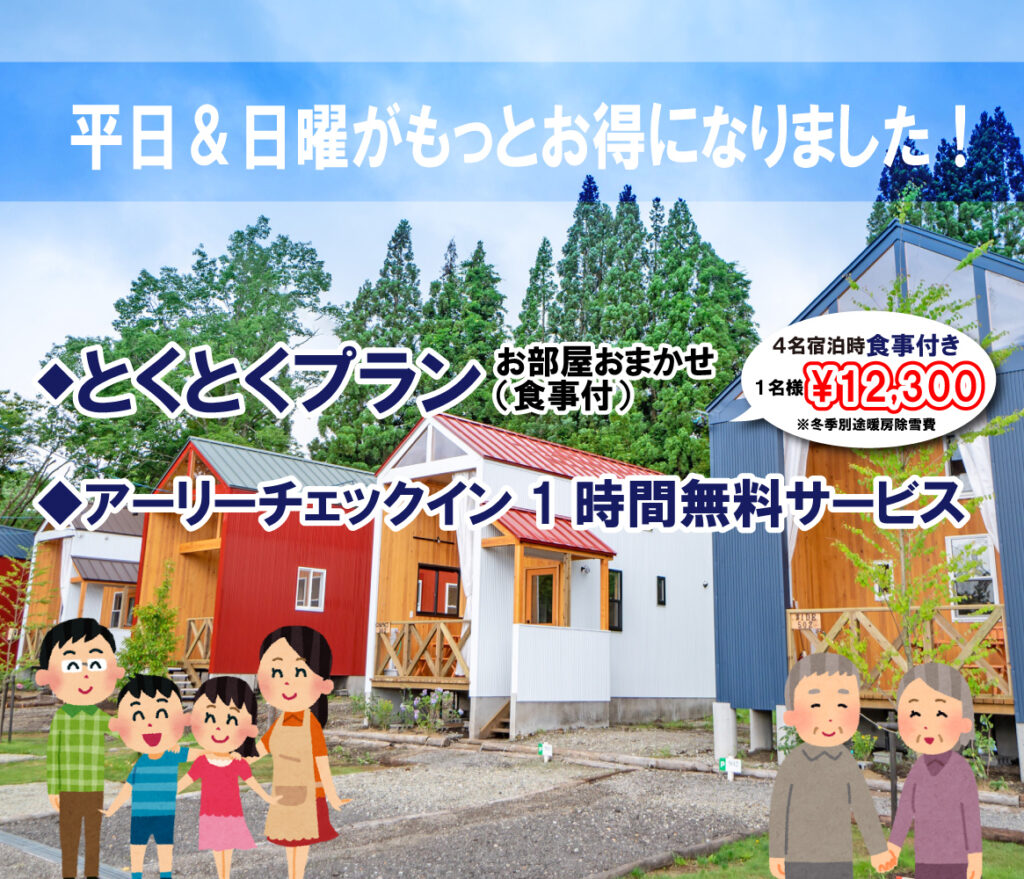 ①平日(日曜日)とくとくコテージお部屋おまかせプラン(2名様~)(コテージ)